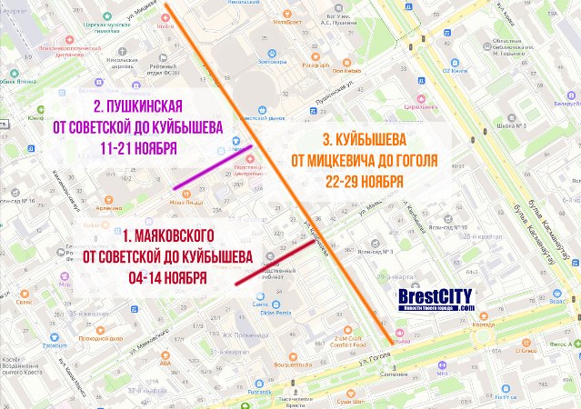 Как сообщает пресс-служба КТУП «Брестгортранс», в Бресте из-за проведения ремонтных работ в районе улицы Куйбышева временно перекроют движение всех транспортных средств. В этой связи маршрутные такси №№5, 21, 23, 35 с 11 по 21 ноября будут курсировать по новым схемам.